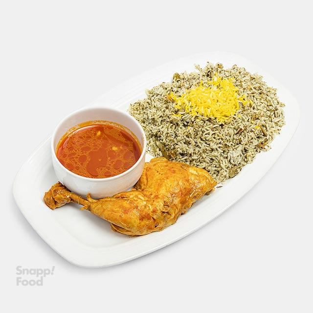 400 گرم ران یا سینه مرغ، ۴۰۰ گرم برنج باقالی پلوی ۱۰۰درصد ایرانی به همراه روغن حیوانی